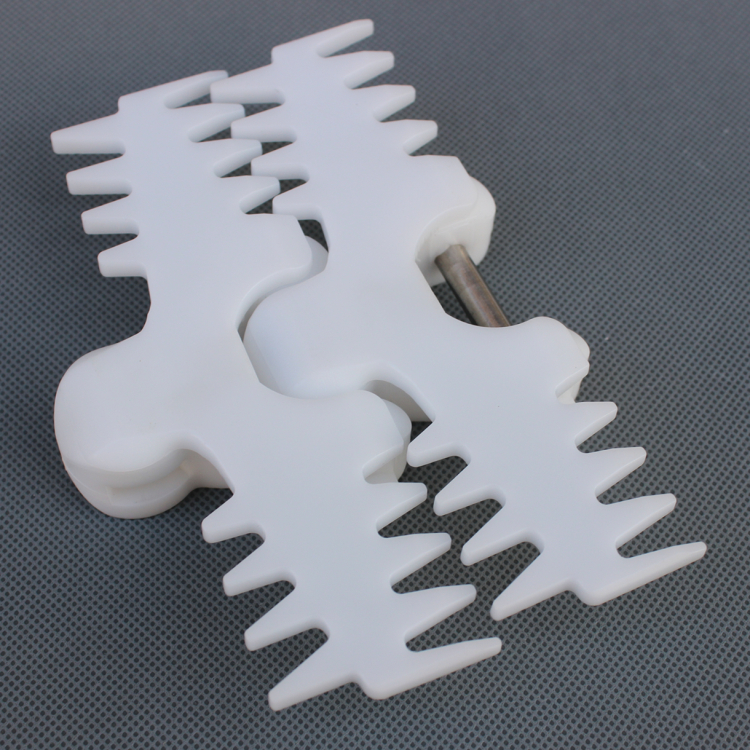 2.材質(zhì):鏈板材質(zhì):聚甲醛(POM),銷軸材質(zhì):冷軋奧氏體不銹鋼。