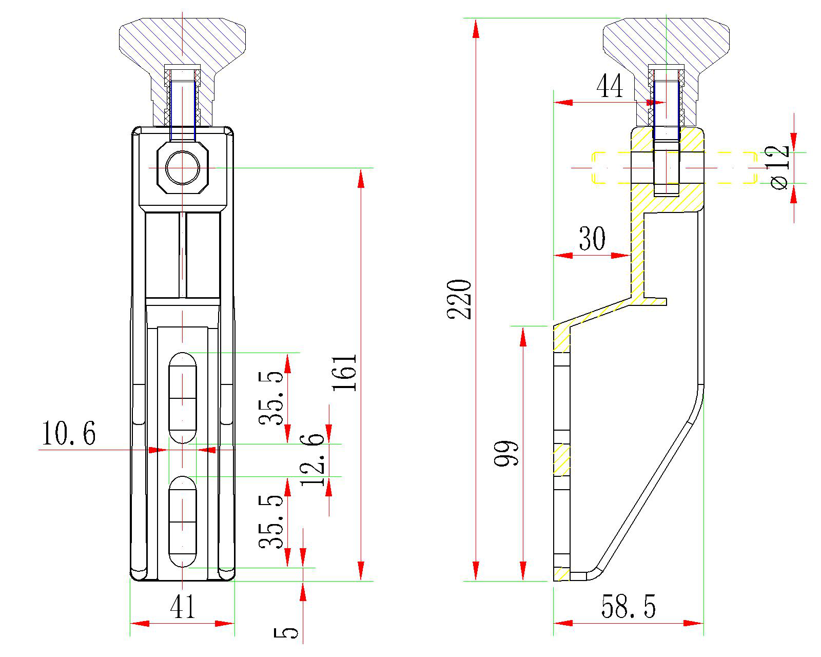 產(chǎn)品描述:尺寸參數(shù) 型號規(guī)格 型號 名稱 材質(zhì) 顏色 804 大支架 加強尼龍+銅 黑色